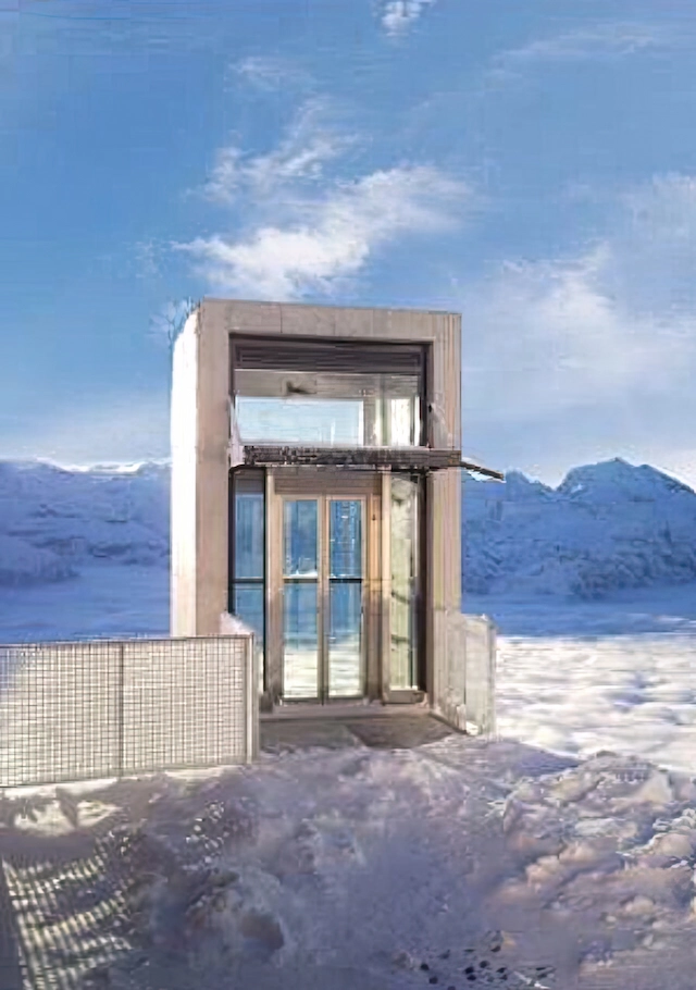 Höchstgelegener freistehender Aufzug Europas, Berner Oberland / Schweiz (der Schweizer Fa. Burch Aufzüge AG, Uetendorf)
